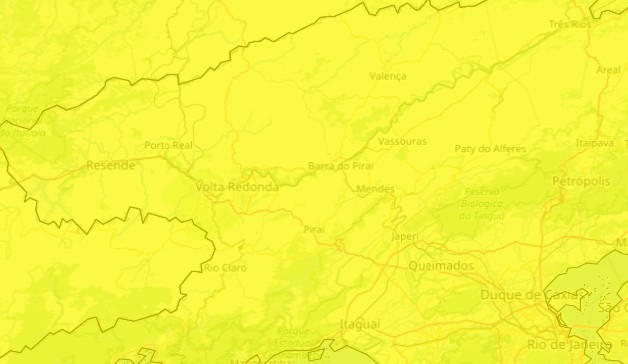 O alerta é válido para Angra dos Reis (RJ), Barra do Piraí (RJ), Barra Mansa (RJ), Comendador Levy Gasparian (RJ), Engenheiro Paulo de Frontin (RJ), Itatiaia (RJ), Mendes (RJ), Miguel Pereira (RJ), Paracambi (RJ), Paraíba do Sul (RJ), Paraty (RJ), Paty do Alferes (RJ), Pinheiral (RJ), Piraí (RJ), Porto Real (RJ), Quatis (RJ), Resende (RJ), Rio Claro (RJ), Rio das Flores (RJ), Sapucaia (RJ), Três Rios (RJ), Valença (RJ), Vassouras (RJ) e Volta Redonda (RJ).