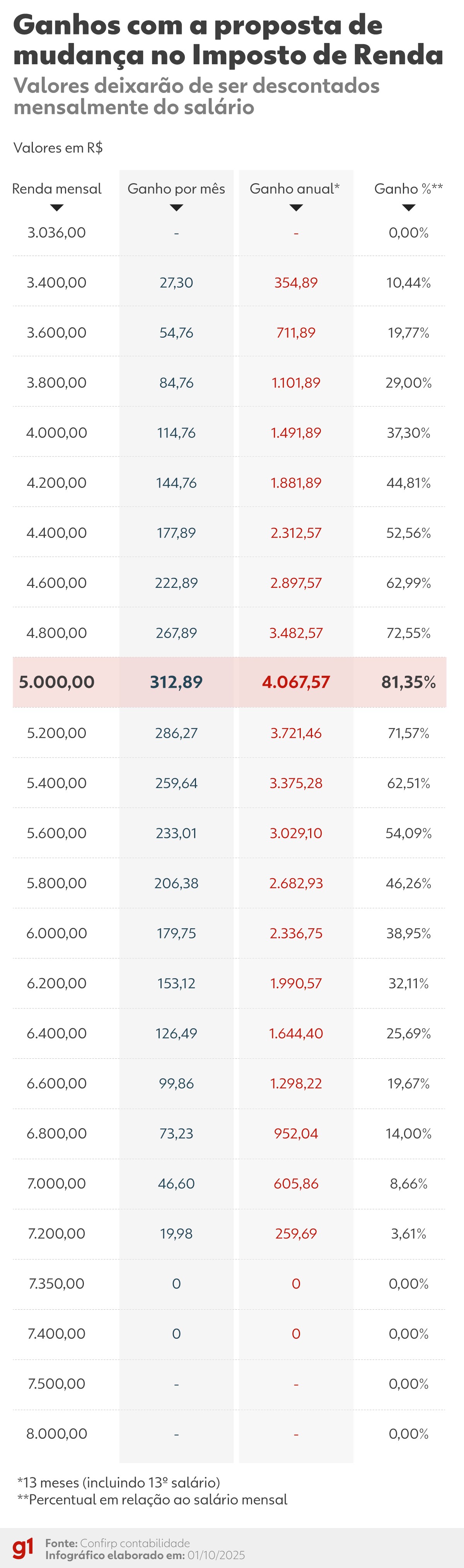 Infográfico - Veja os ganhos com a proposta de isenção do Imposto de Renda.